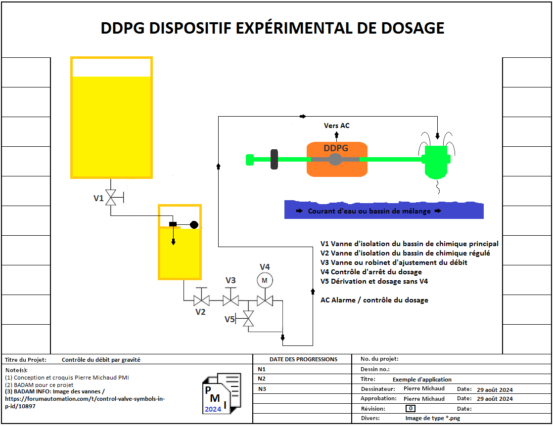 Prendre note que la ville de Montréal utilise déja un dosage par gravité dans certaines installations / sans la stabilisation de la pression hydrostatique et aussi sans le DDPG (BADAM-A Pierre Michaud).