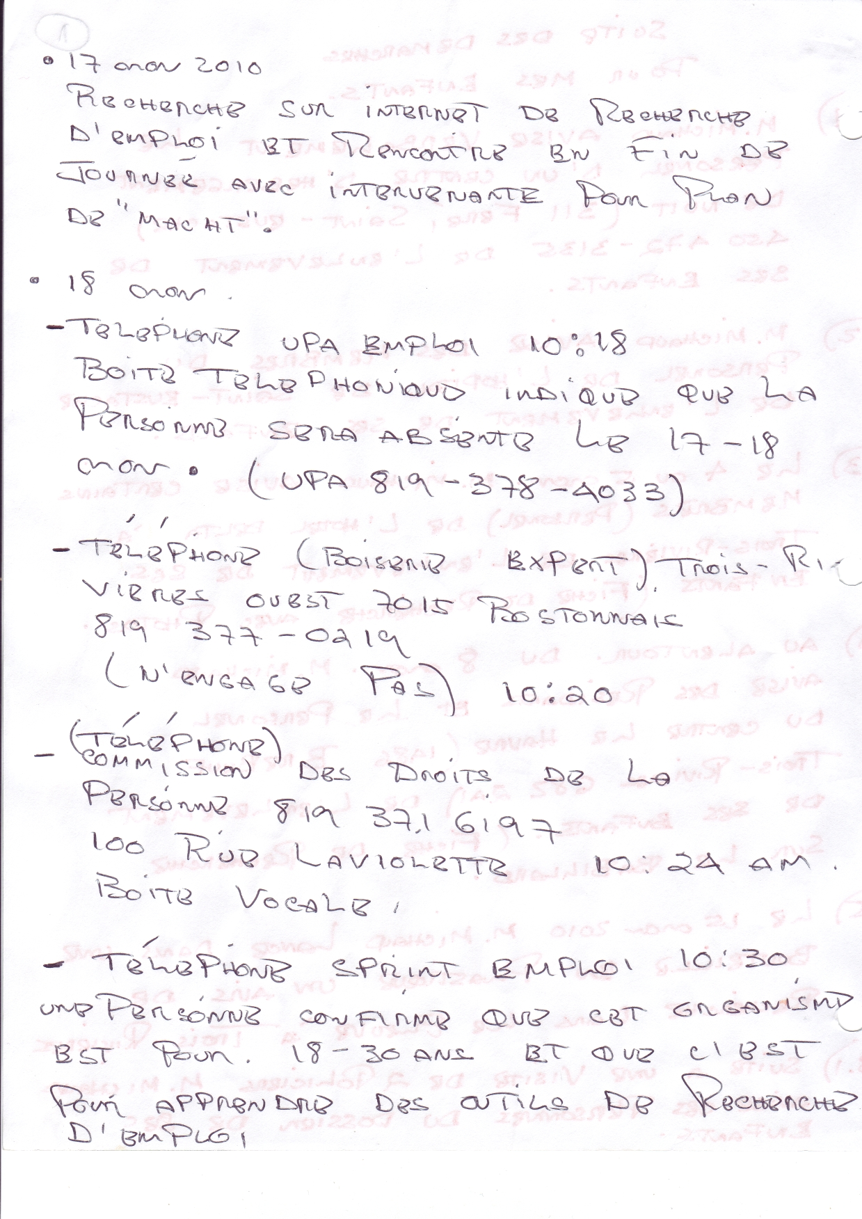 | 002 | Recherche d'emplois à Trois-Rivières après mon expulsion de ma résidence de Rosemère (219 Lauréanne). | TR2 |