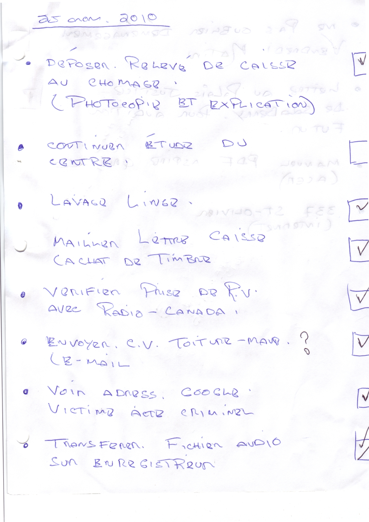 | 133 | Document du CLE de Trois-Rivières qui demande d'identifier toutes formes d'avoir d'une personne daté du 10 des 2010 2 de 2 (dans quel bût ?) | TR132 |