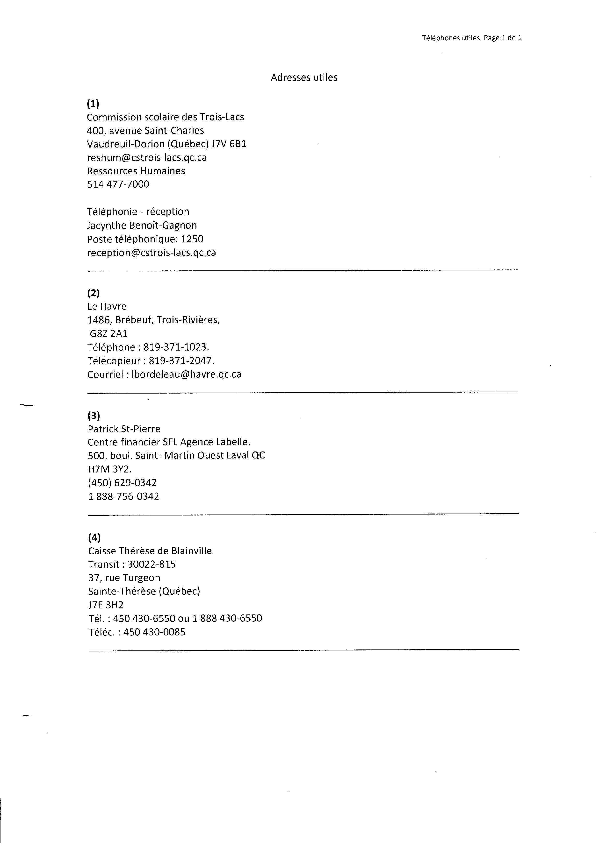 | 037 | Demande de document à la Commission Scolaire des Trois-Lacs | TR37 |
