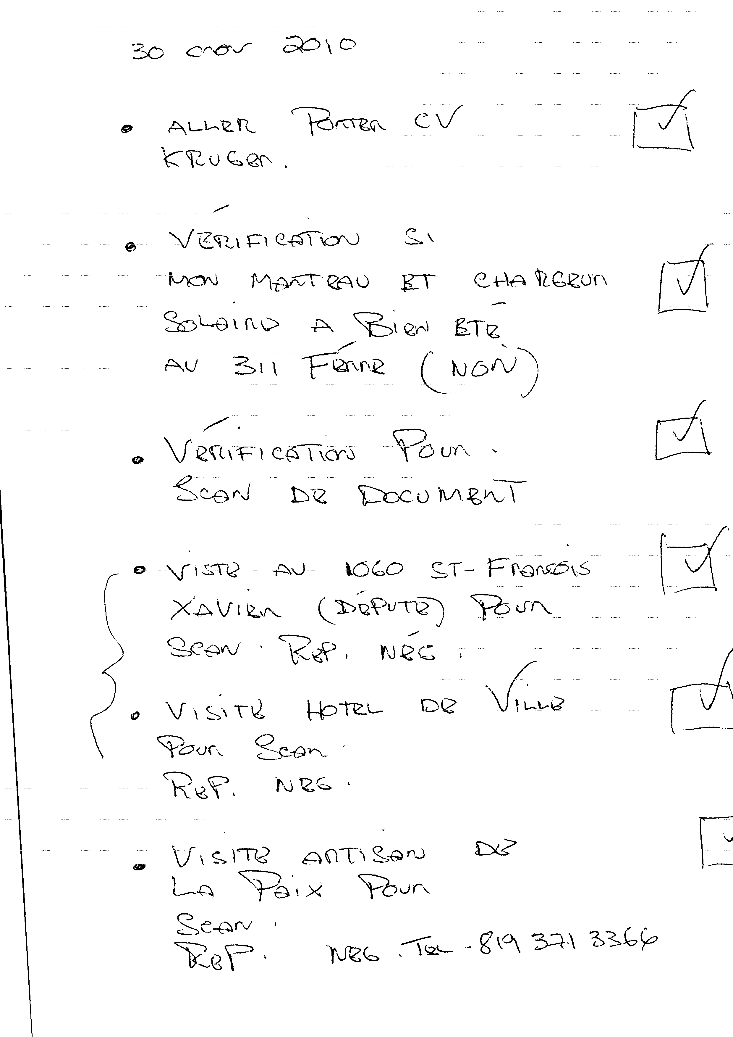 | 052 | Agenda de Pierre Michaud à Trois-Rivières du 30 novembre 2010 | TR52 |