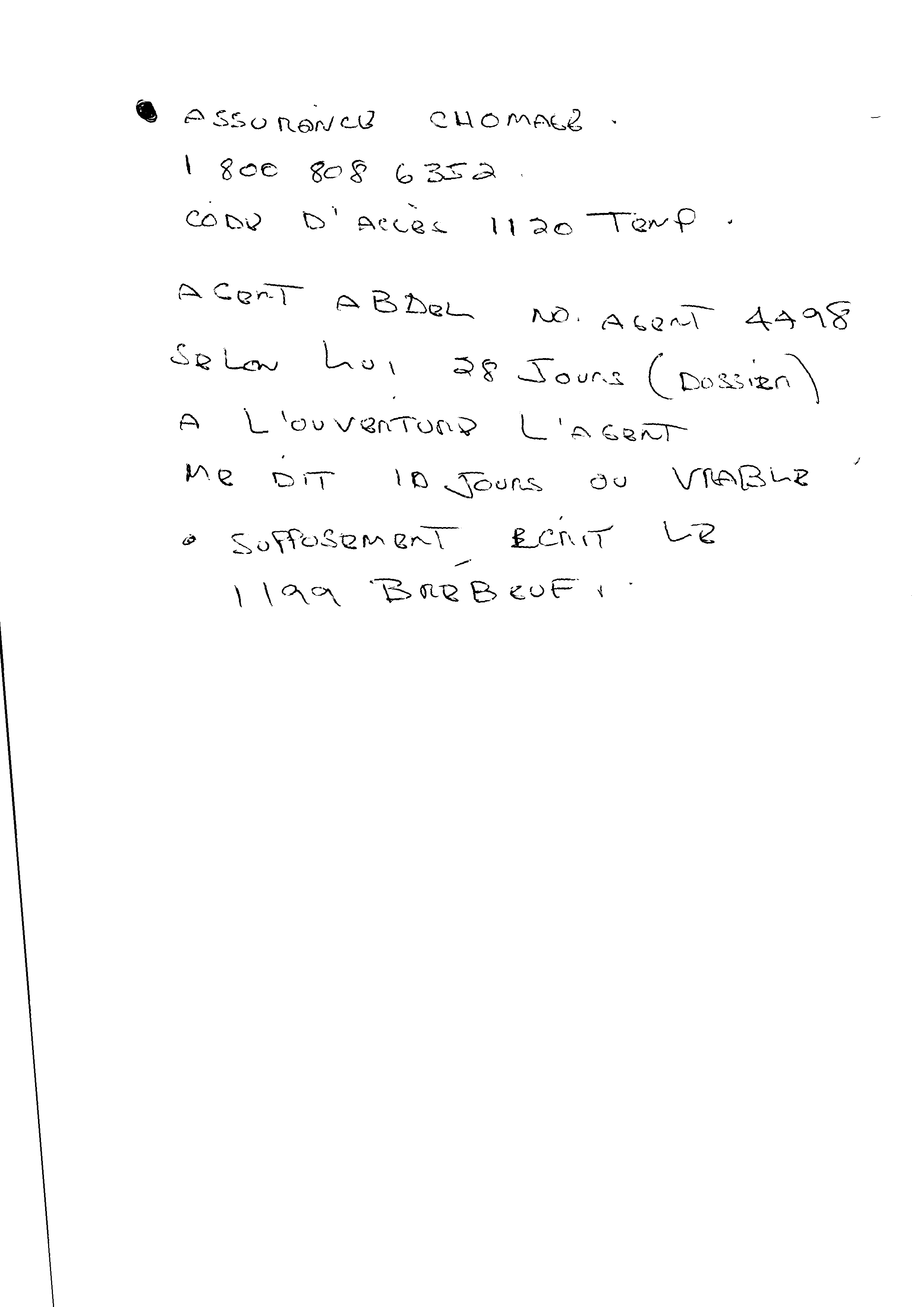 | 020 | Indormations au prestataire du centre local d'emploi de Trois-Rivières daté du 19 novenbre 2010. | TR20 |