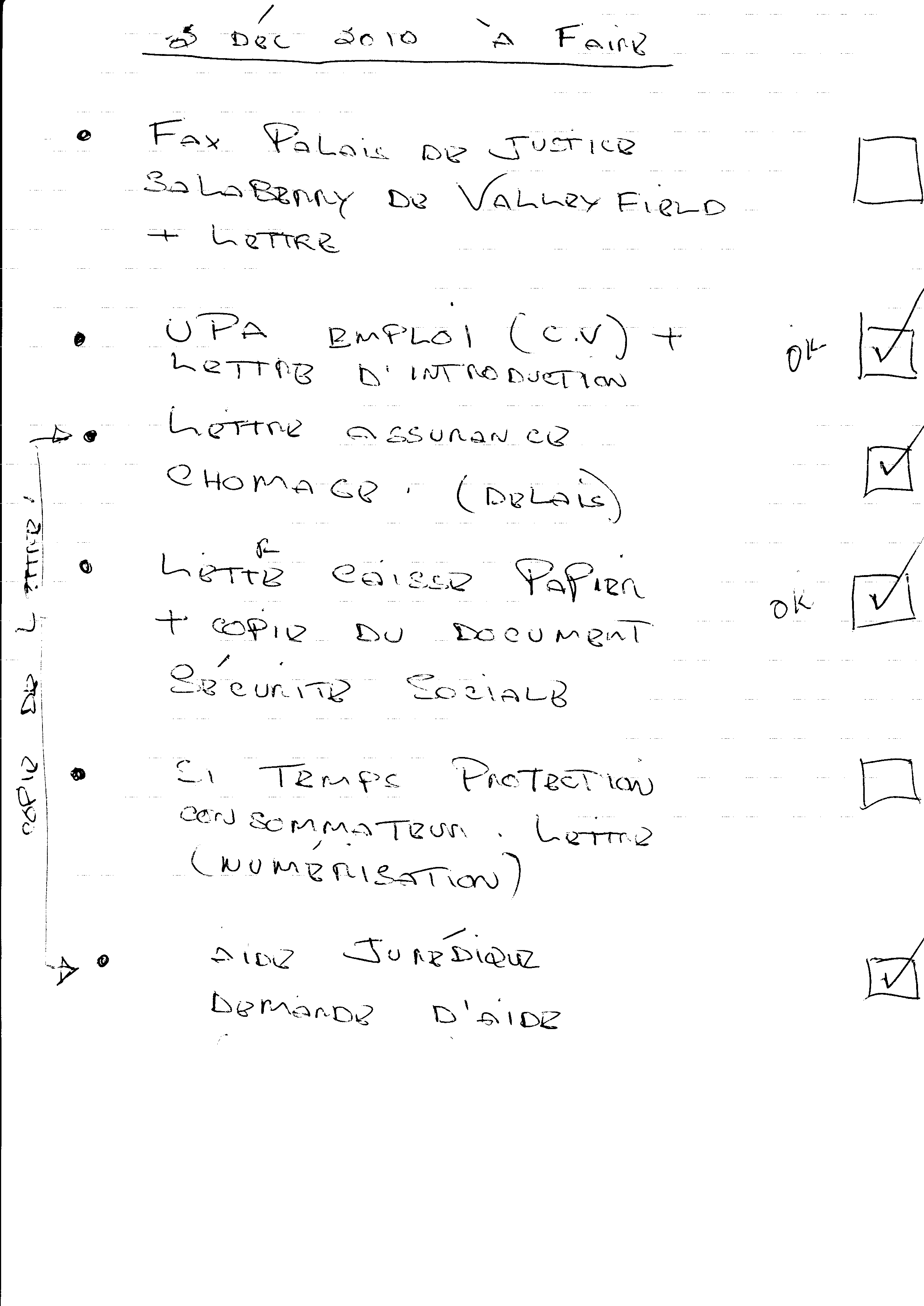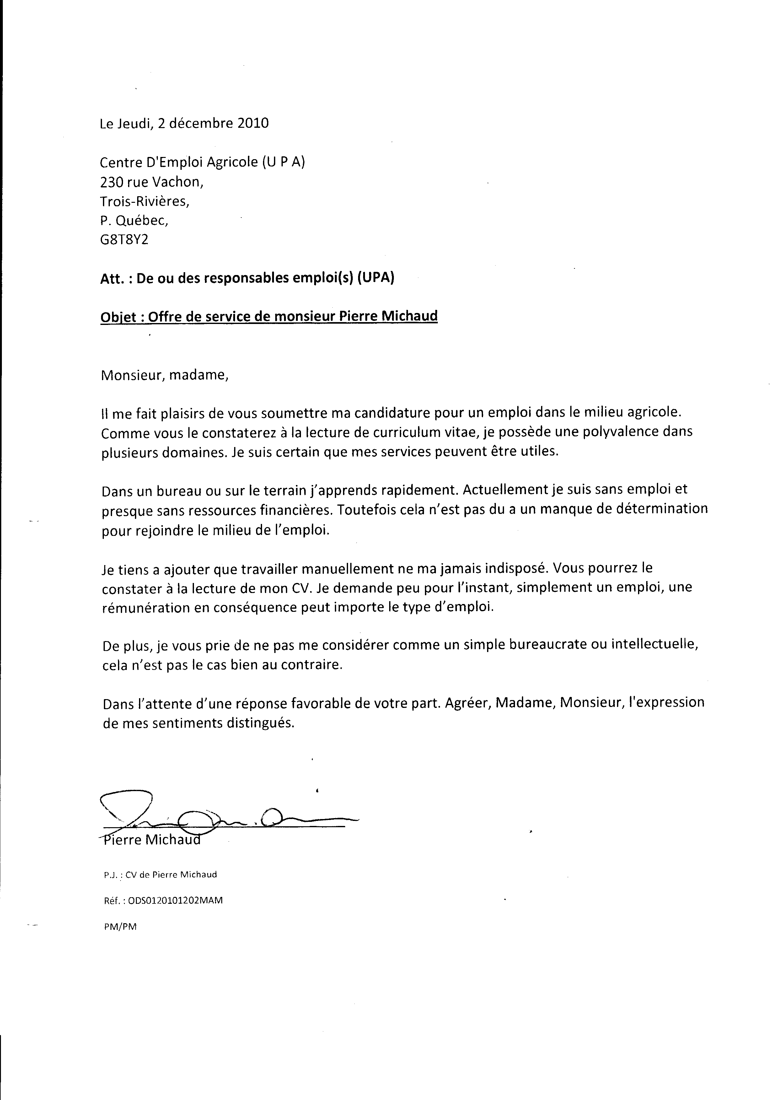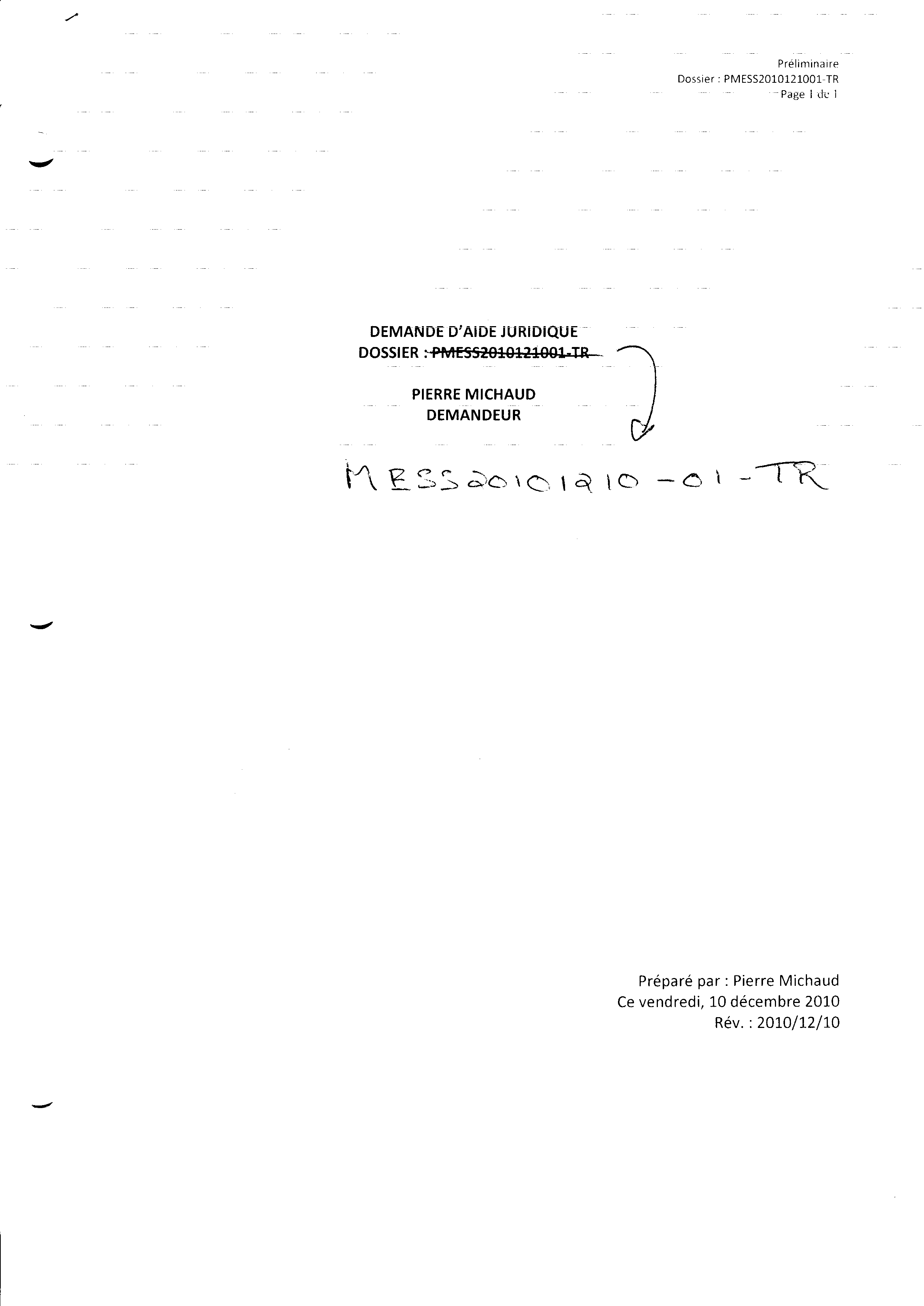 | 070 | Lettre de demande d'aide juridique au 1350 Royale Trois-Rivières le 2 décembre 2010 2 de 2 | TR70 |
