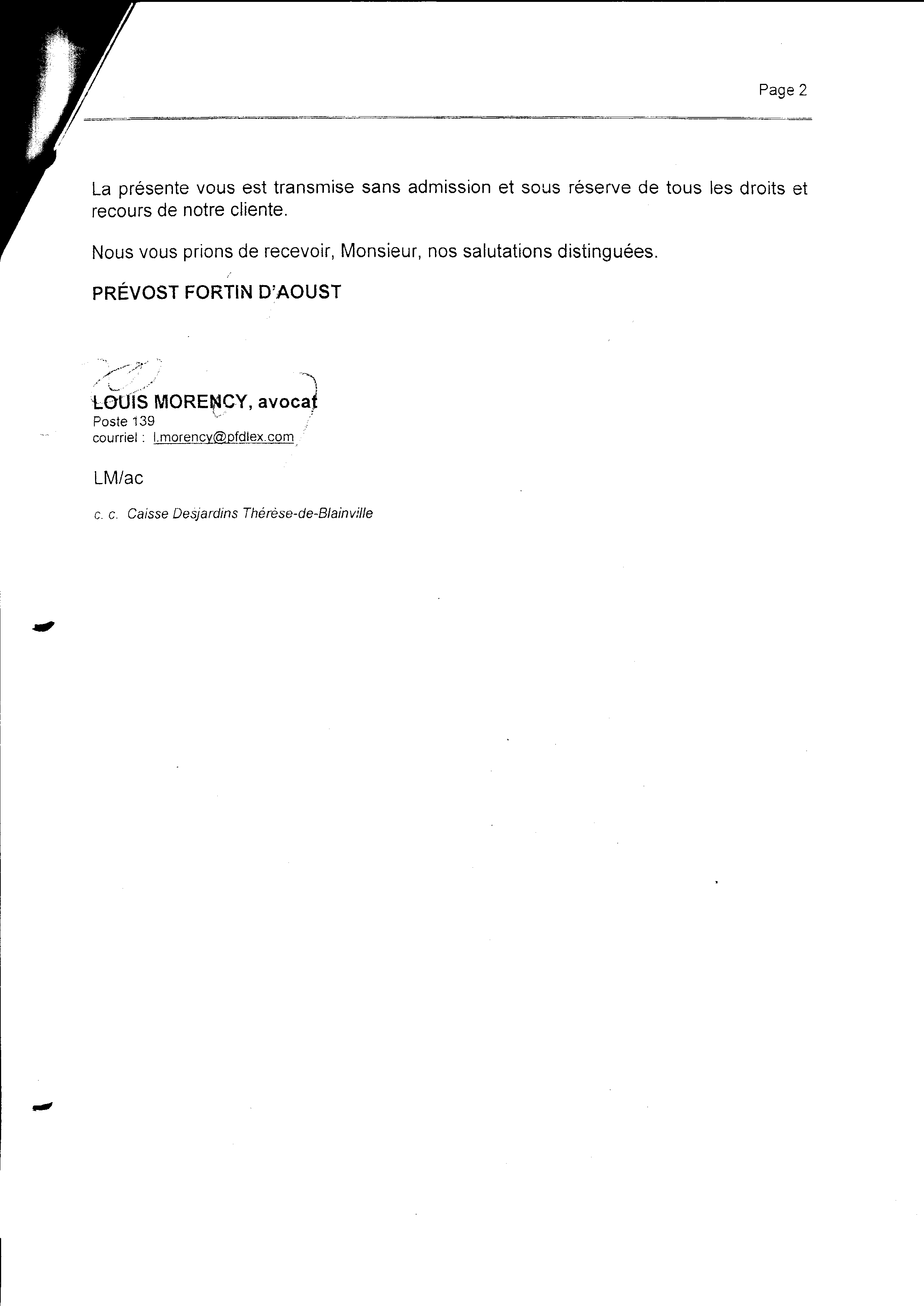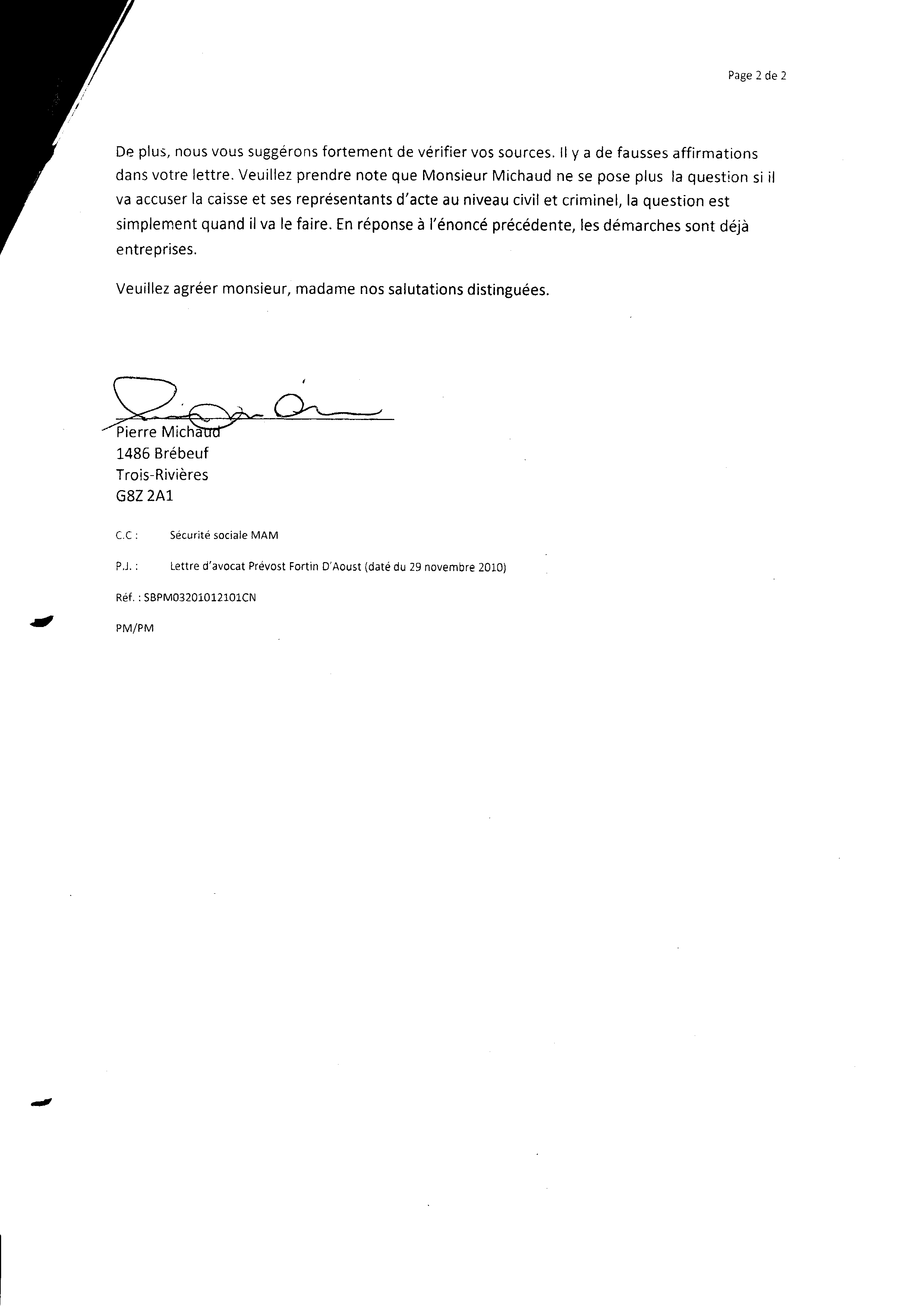 | 060 | Réponse a la lettre d'avocat SBPM03201012101CN page 2 | TR60 |