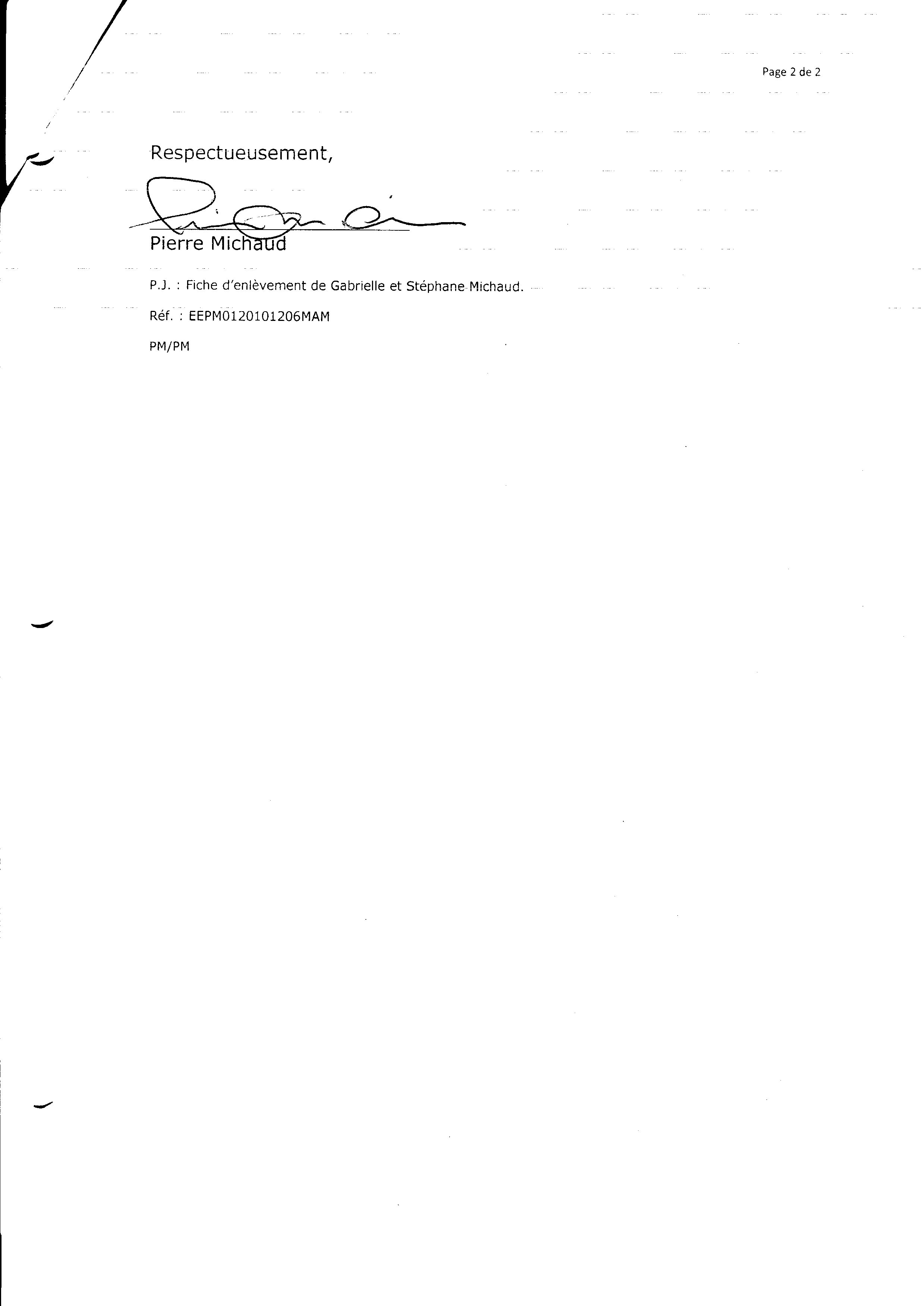 | 077 | Lettre de demande a la caisse une autre pour obtenir les documents de Pierre Michaud du 219 Lauréanne Rosemère (duplicata) | TR77 |