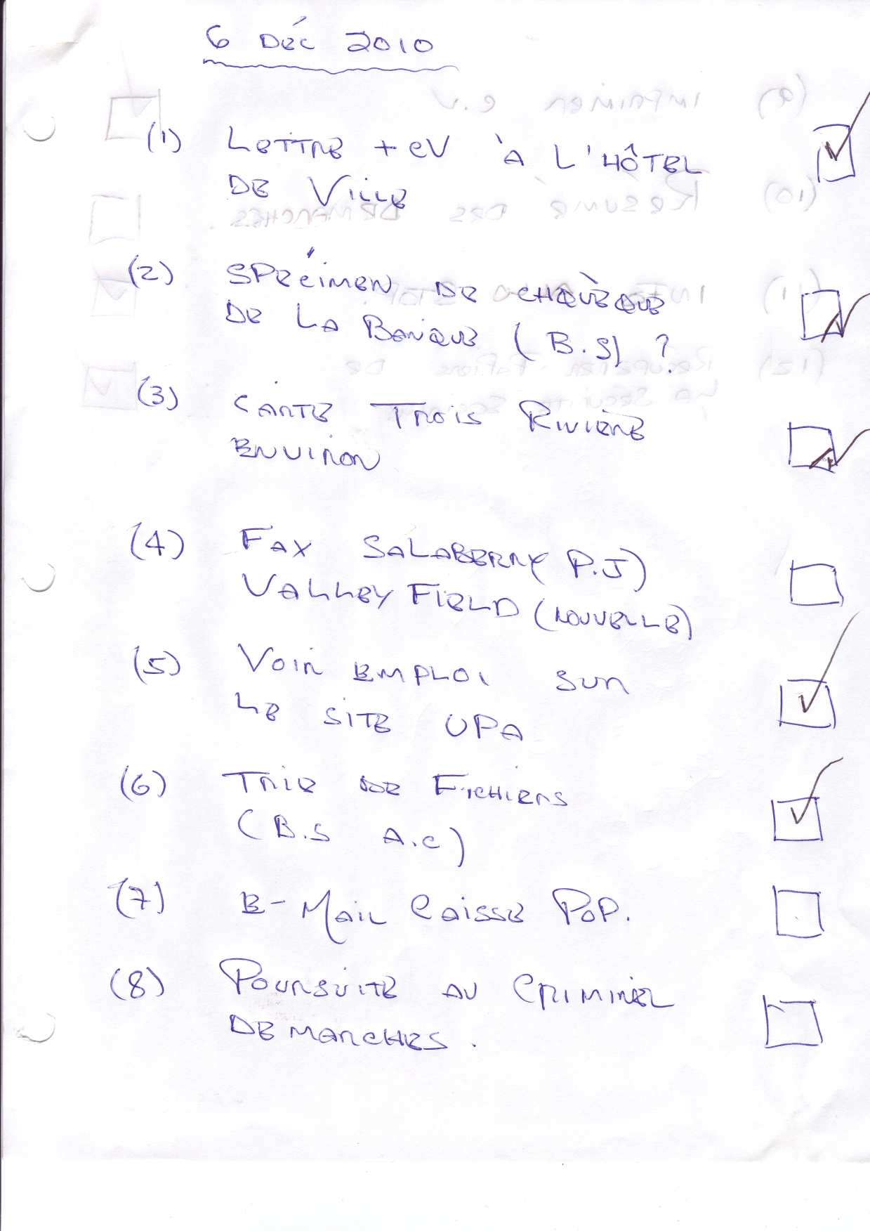 | 105 | Mémo de Pierre Michaud expliquant la priorité des dossier de Pierre Michaud le 09 décembre 2010 2 de 2 | TR105 |