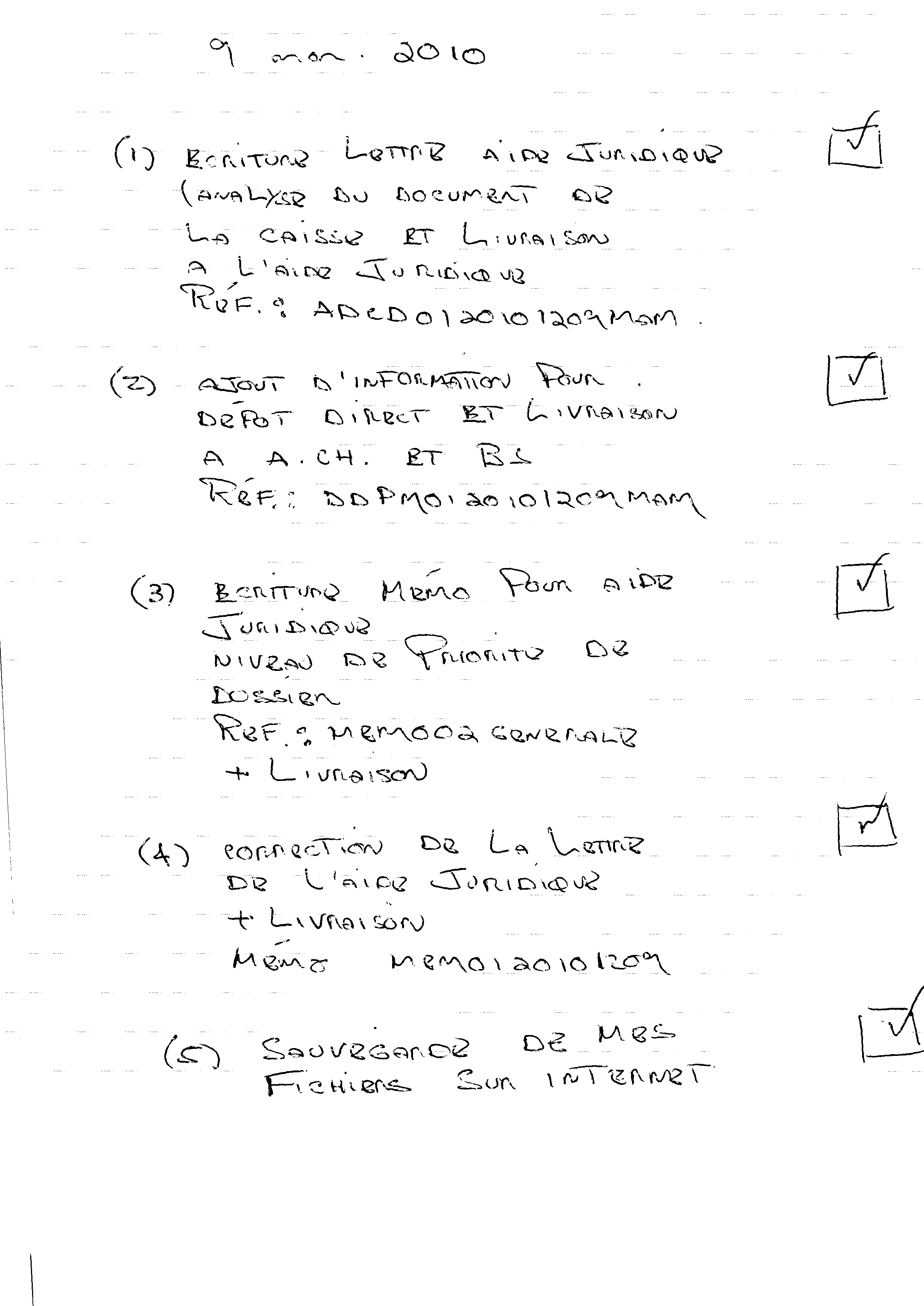 | 097 | Action du 08 décembre 2010 incluant un téléphone a l'aide juridique expliquant le mot AIDE dans l'espression aide juridique. | TR97 |