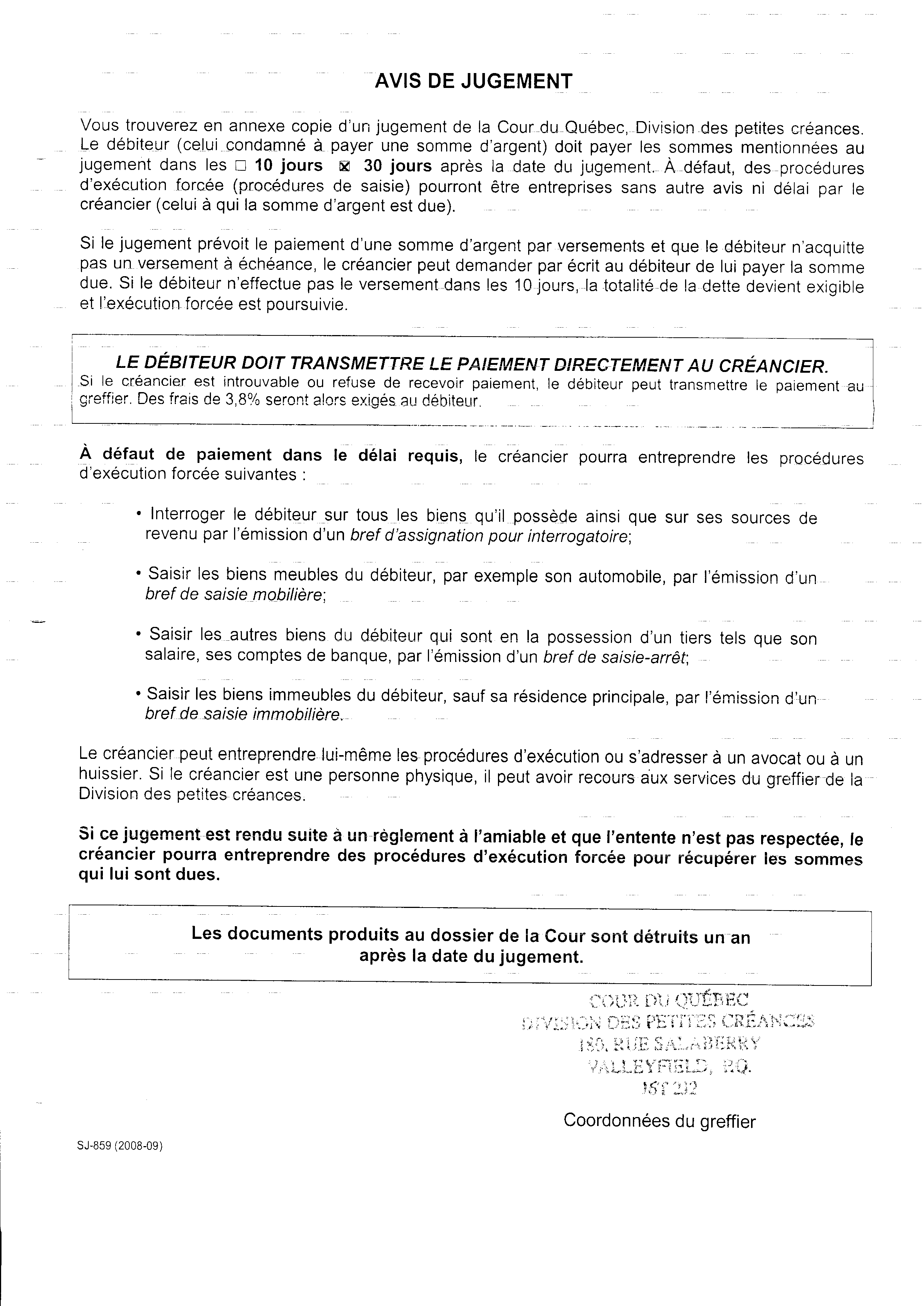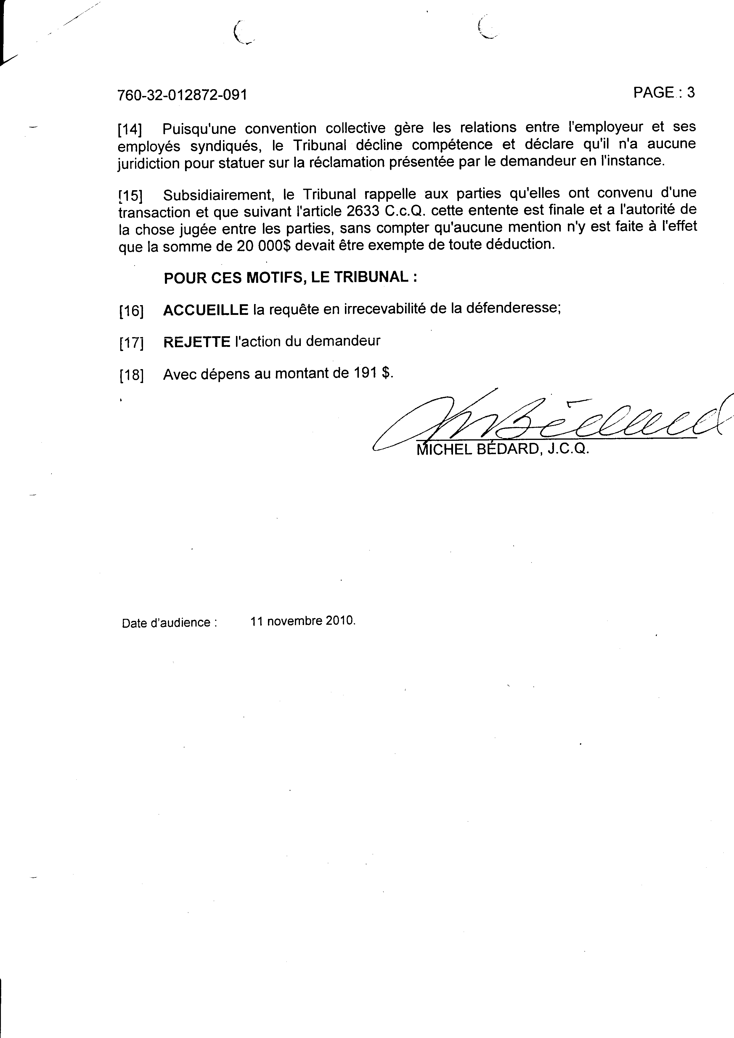 | 125 | Jugement des petites créances suite a ma demande de poursuite (la première) contre la commission Scolaire des Trois-Lacs le 16-11-2010 3 de 4 | TR125 |
