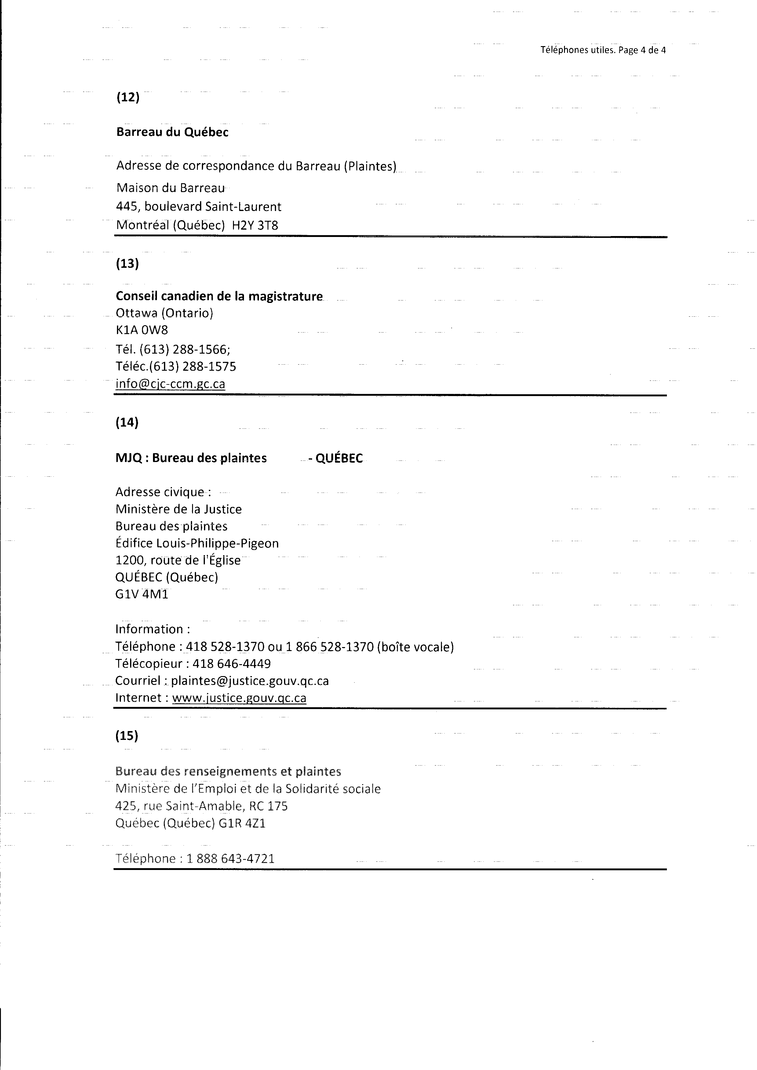 | 121 | Informations pour l'aide juridique et avis de plainte contre M. Marc Gervais du CLE de Trois-Rivières le 10 décembre 2010 4 de 5 | TR121 |