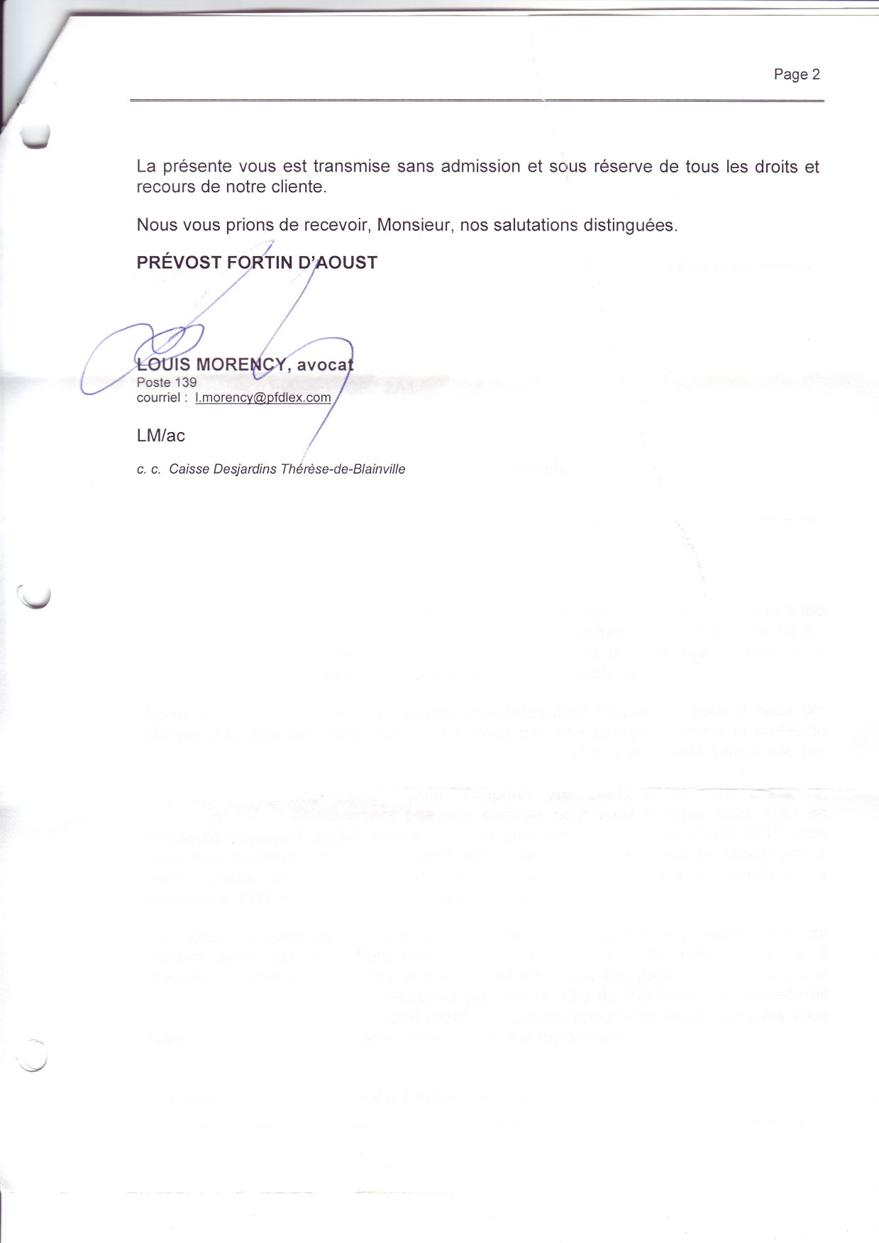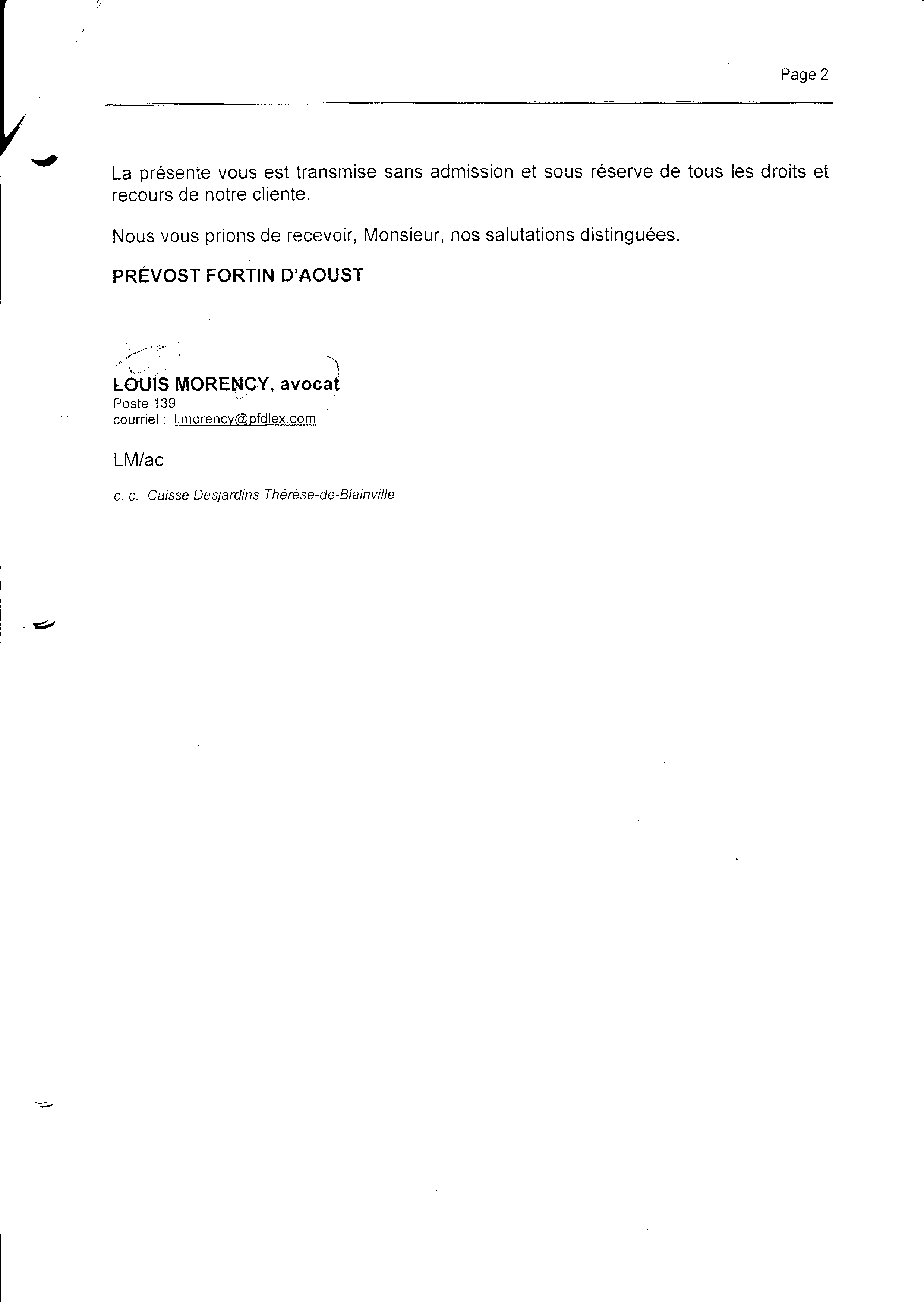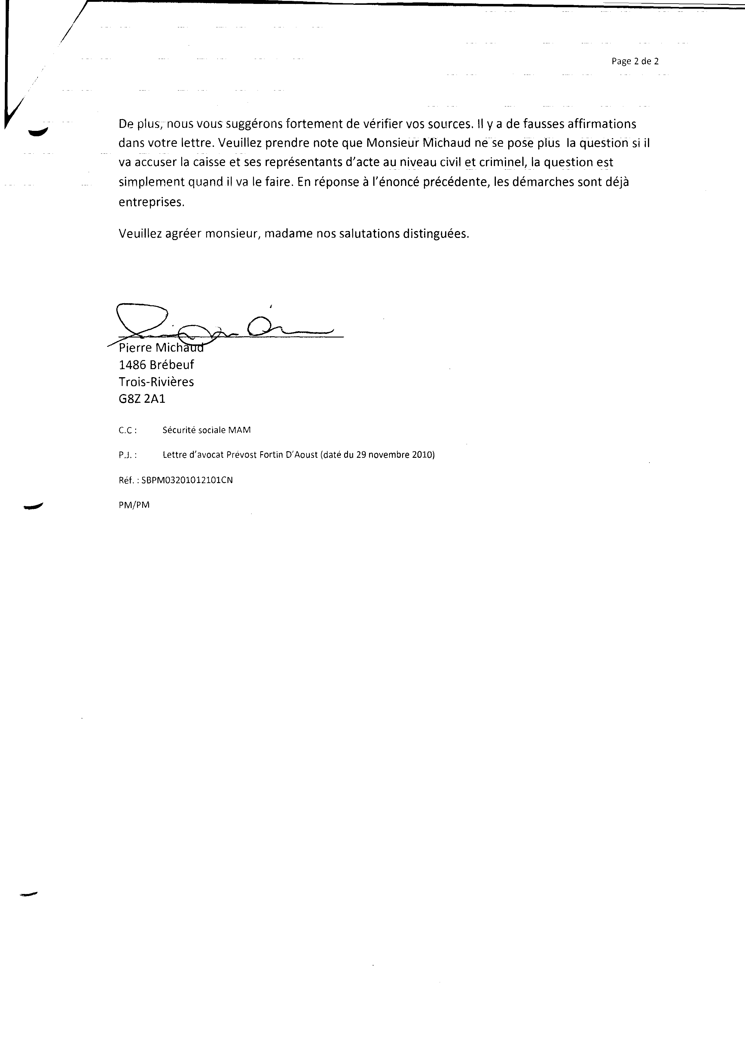 | 060 | Réponse a la lettre d'avocat SBPM03201012101CN page 2 | TR60 |