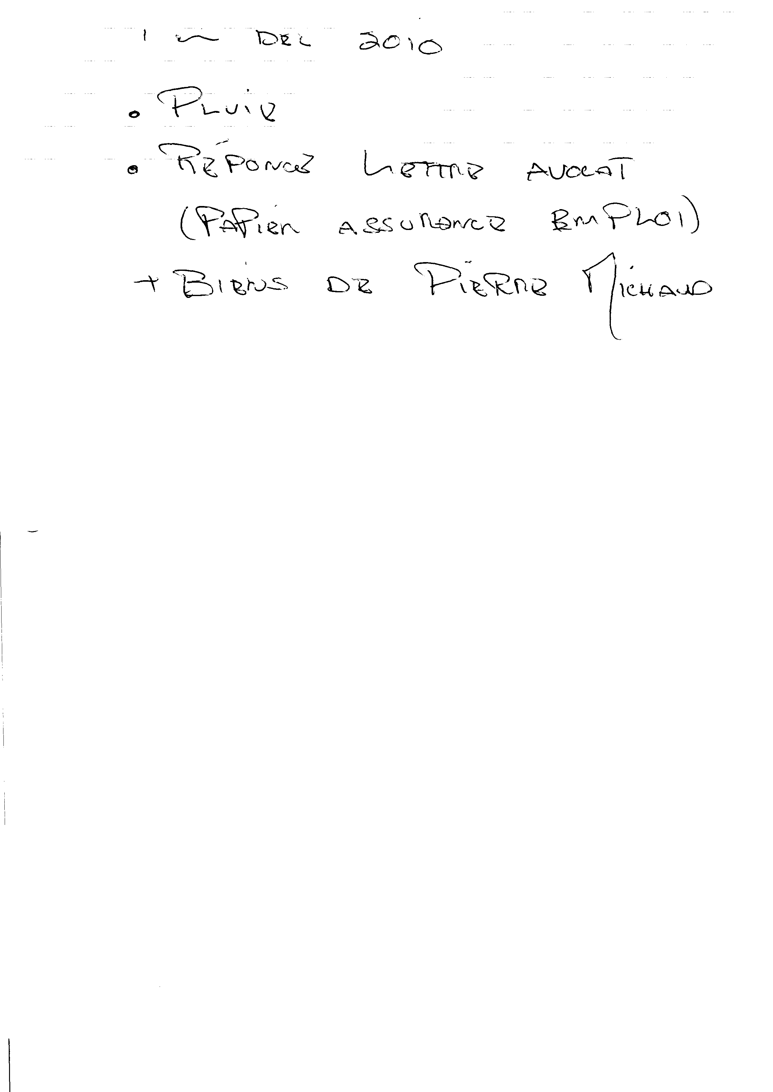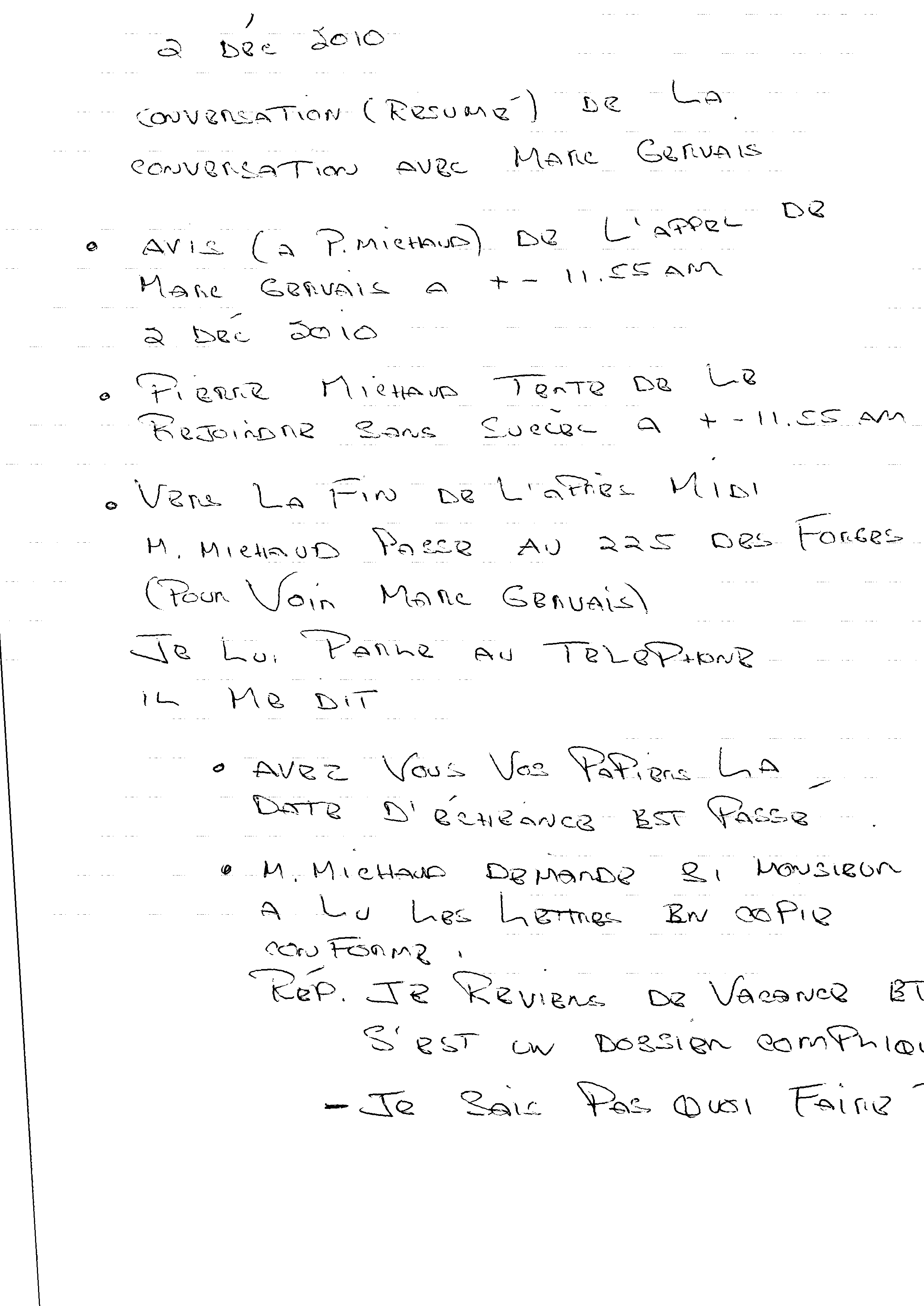 | 105 | Mémo de Pierre Michaud expliquant la priorité des dossier de Pierre Michaud le 09 décembre 2010 2 de 2 | TR105 |
