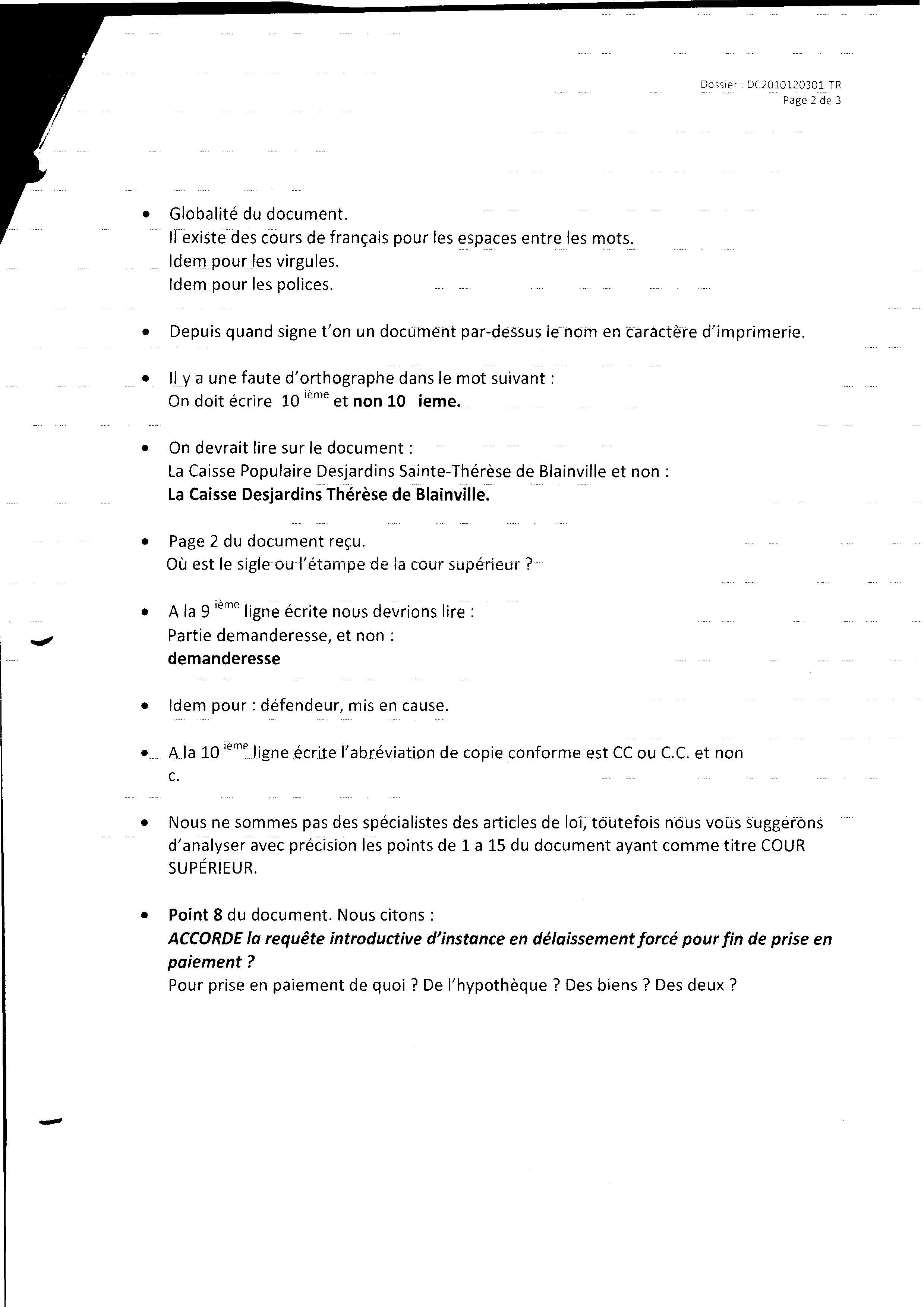 | 108 | Analyse du document de la caisse populaire d'expulsion (un torchon) 1 de 3 ce 09 décembre 2010 | TR108 |