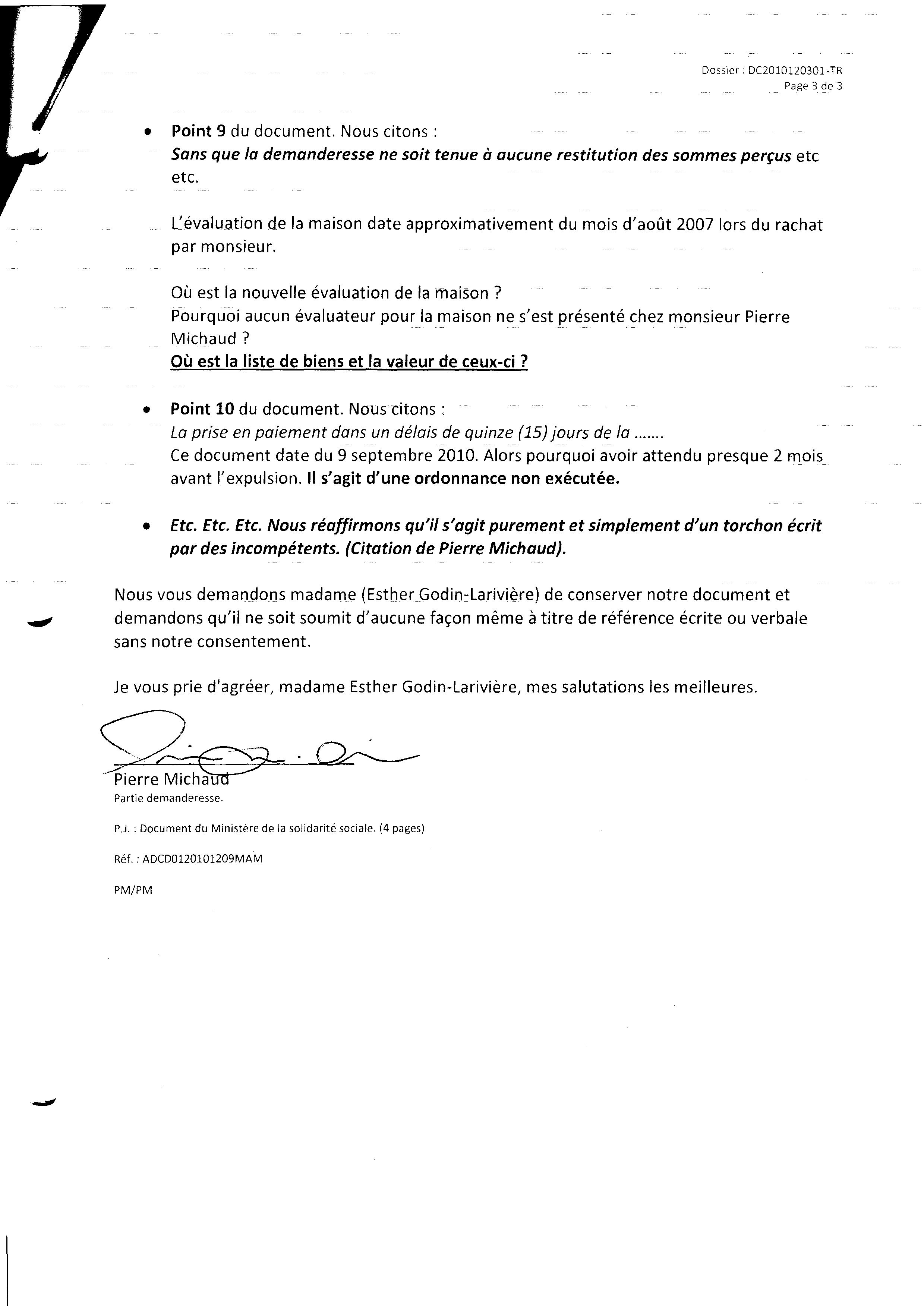 | 130 | Analyse de cet autre torchon par Pierre Michaud le 13 décembre 2010 page 3 de 4 (une sanction d'emprisonnement doit être envisagé contre ces gens) | TR129 |