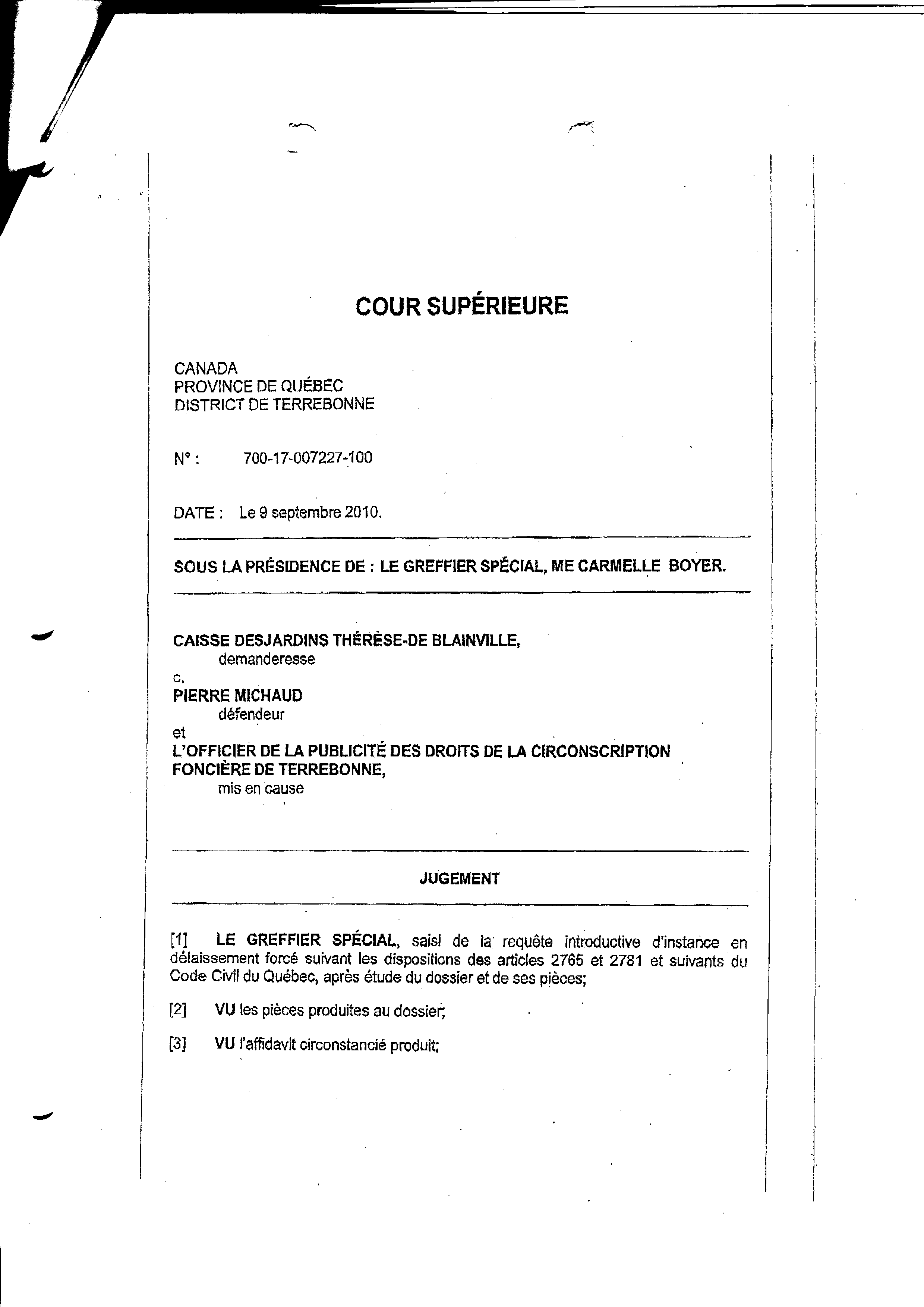 | 114 | Cour supérieur LE JUGEMENT (le torchon) 3 de 3 ce 09 décembre 2010 | TR114 |