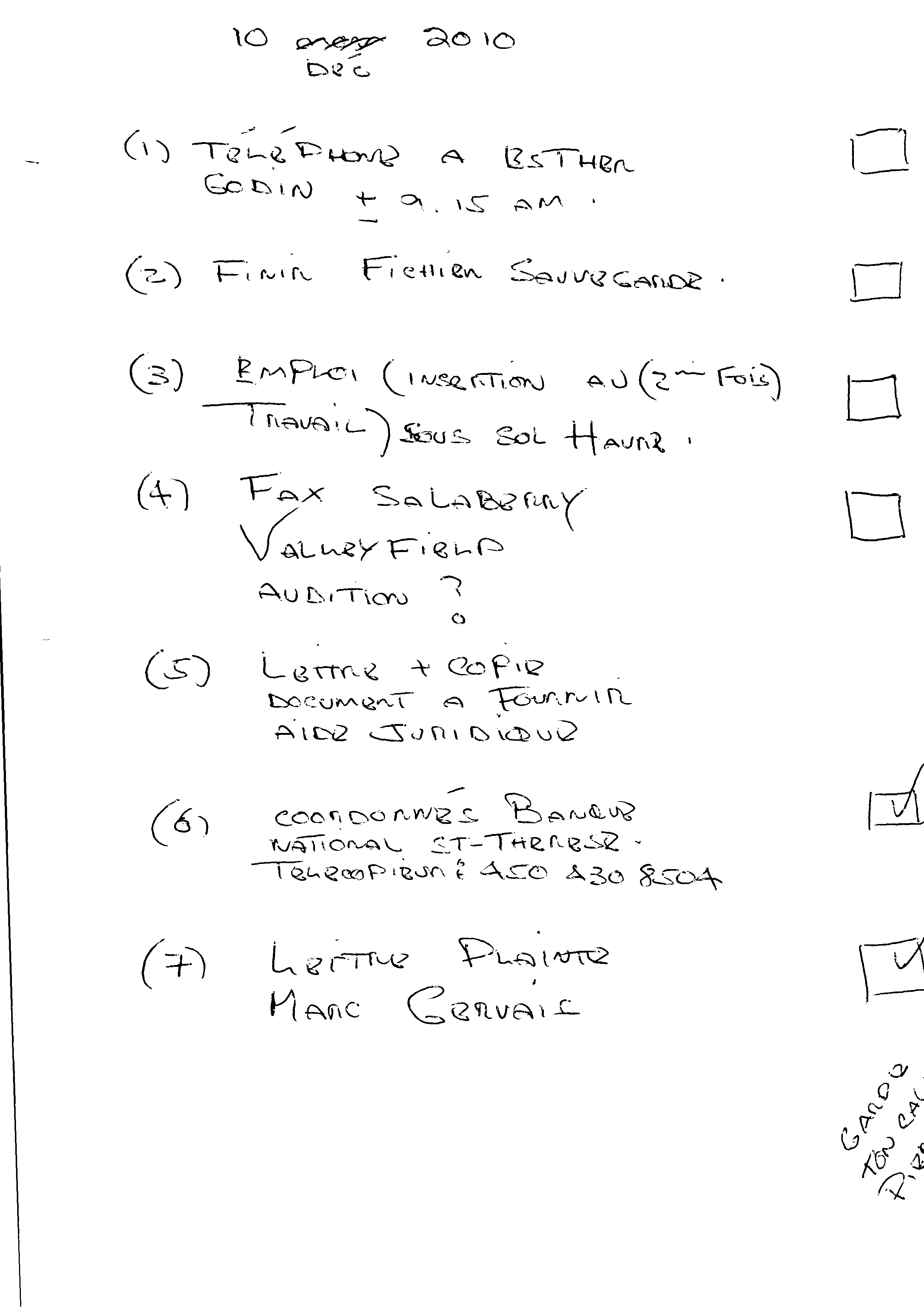 | 122 | Informations pour l'aide juridique et avis de plainte contre M. Marc Gervais du CLE de Trois-Rivières le 10 décembre 2010 5 de 5 | TR122 |