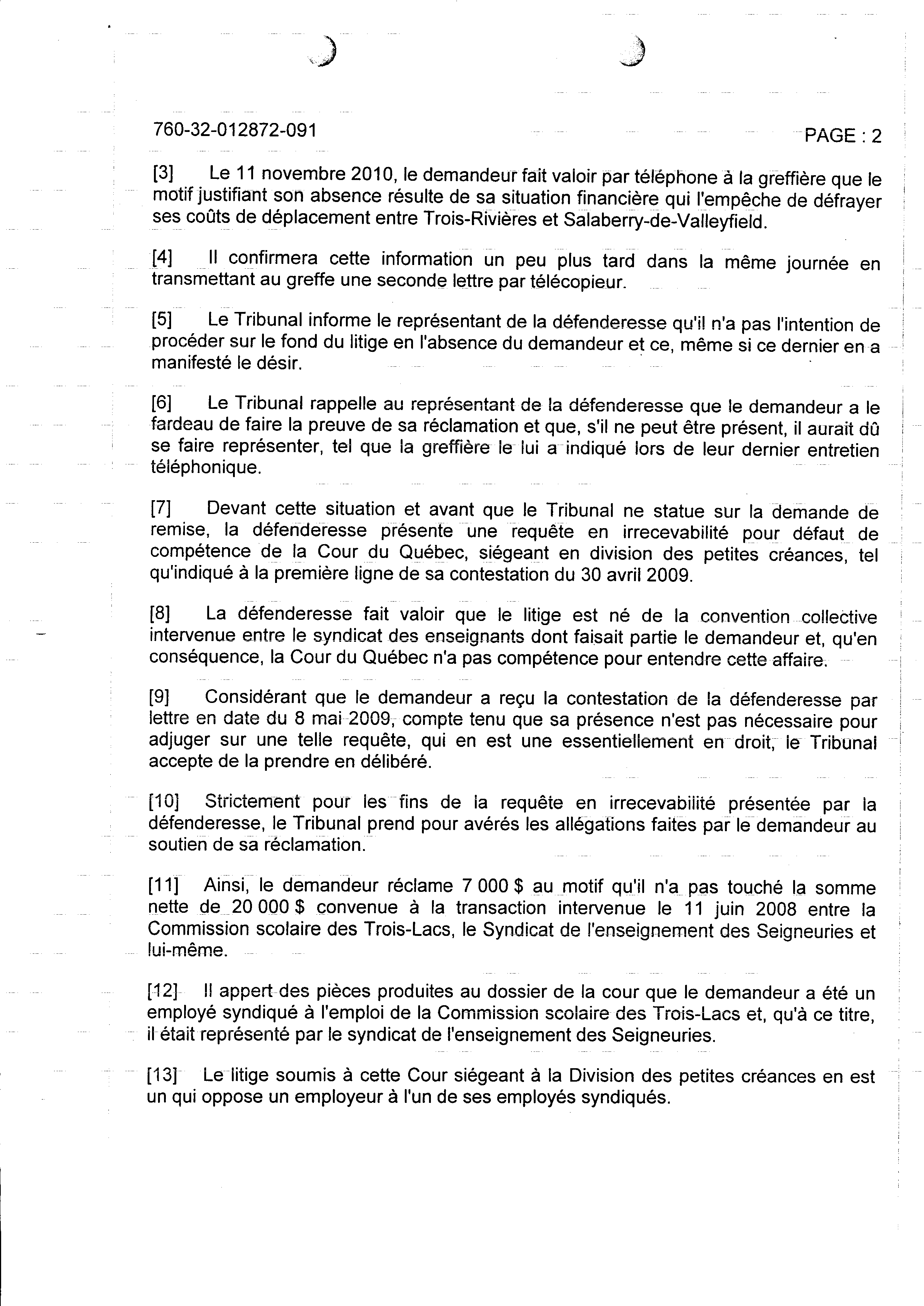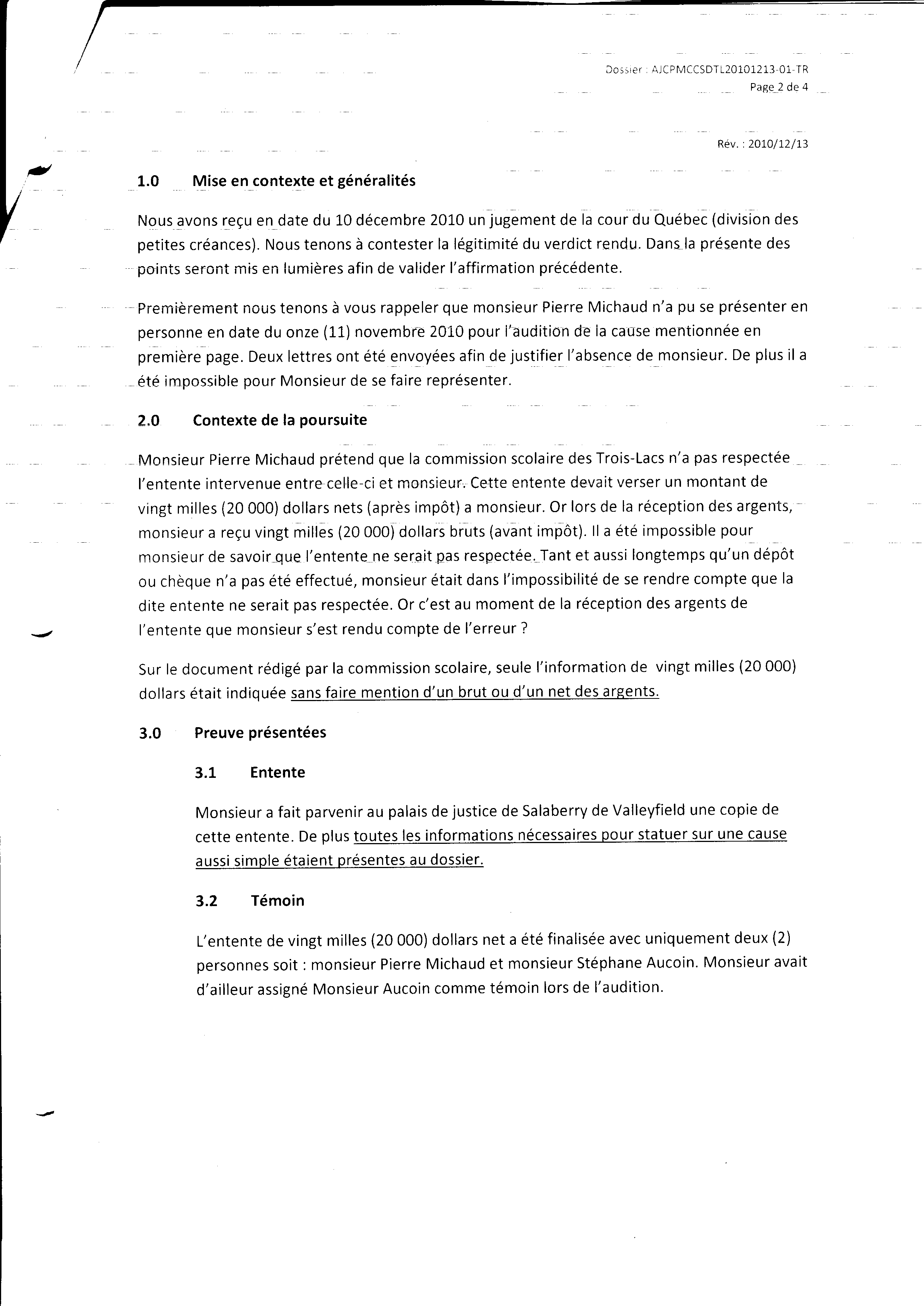 | 124 | Jugement des petites créances suite a ma demande de poursuite (la première) contre la commission Scolaire des Trois-Lacs le 16-11-2010 2 de 4 | TR124 |