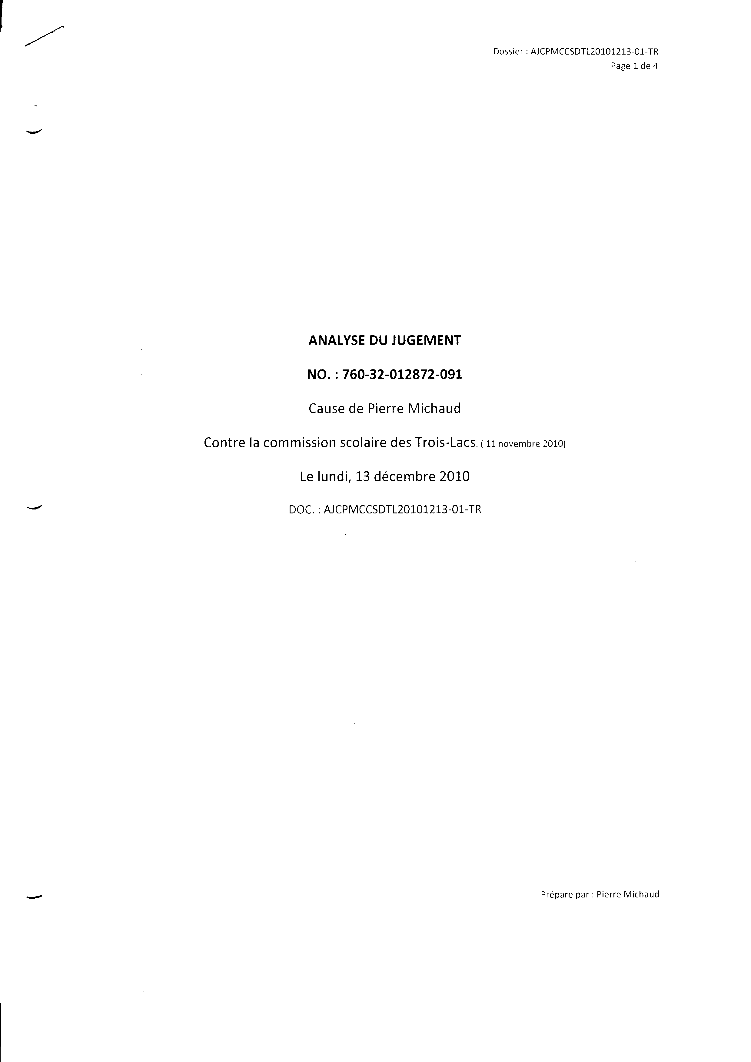 | 127 | Analyse de cet autre torchon par Pierre Michaud le 13 décembre 2010 page 1 de 4 (une sanction d'emprisonnement doit être envisagé contre ces gens) | TR127 |