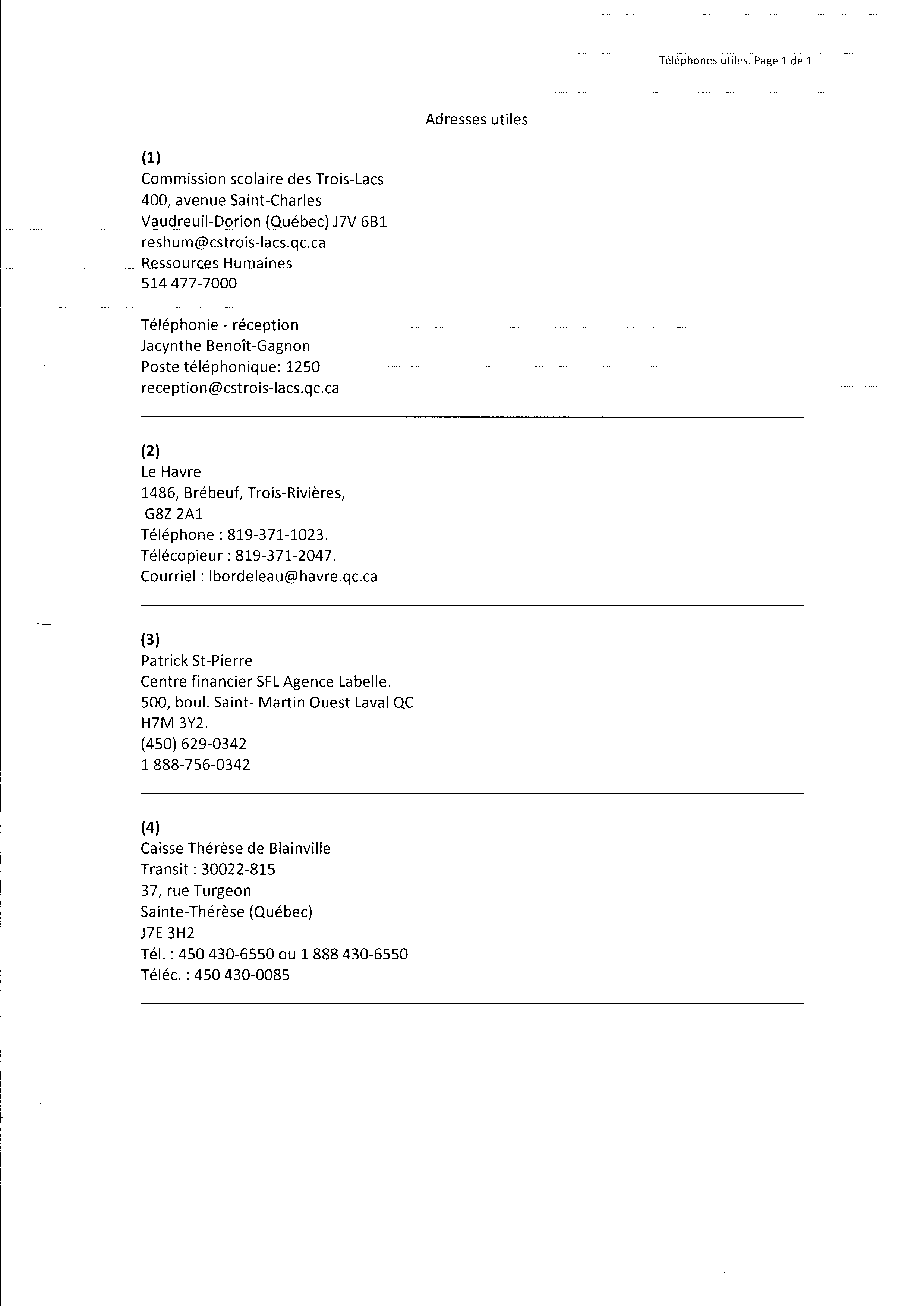 | 037 | Demande de document à la Commission Scolaire des Trois-Lacs | TR37 |